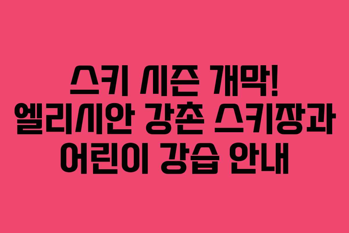 본격적인 겨울이 다가오면서 스키 시즌이 시작됩니다. 이번 포스트에서는 엘리시안 강촌 스키장을 비롯한 주요 스키장의 개장 일정과 리더짐 사당 어린이 스키 강습에 대해 알아보겠습니다.