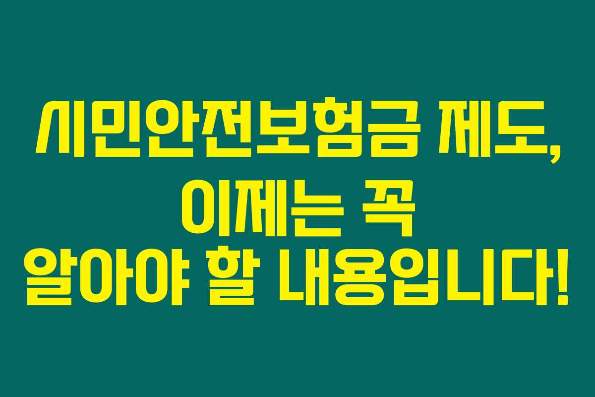 시민안전보험금 제도를 모르면 사고가 났을 때 제때 보상을 받지 못할 수 있어요. 여러분의 안전과 재정적인 피해를 줄이기 위해 시군구청에서 제공하는 이 보험 제도에 대해 자세히 살펴보세요. 만약 사고를 당하셨다면 아래 내용을 통해 꼭 보상 신청을 진행해보세요!