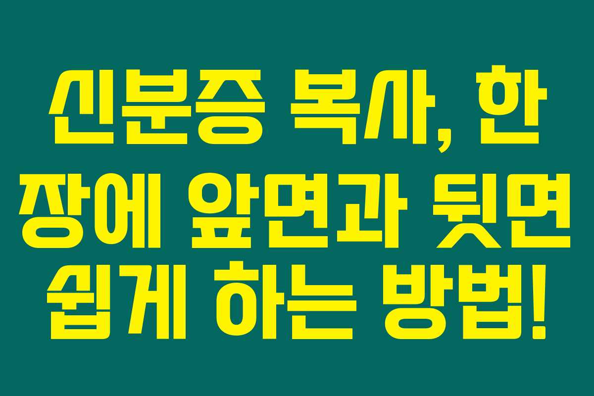 신분증 복사하려고 하시나요? 신분증 하나로 여러 공공기관이나 은행에서 요구하는 경우가 종종 있어요. 그렇다면 신분증을 한 장에 앞면과 뒷면을 동시에 복사하는 간단한 팁을 소개할게요. 아래를 읽어보시면, 복사기 조작이 어려운 초보자도 쉽게 따라 할 수 있는 방법을 알게 될 거예요.