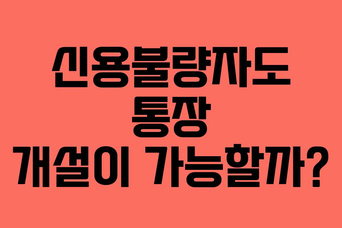 신용불량자의 통장 개설 가능성에 대한 의문은 많은 분들이 가지고 있는 주제입니다. 신용불량자도 통장을 개설할 수 있지만, 몇 가지 유의사항이 있습니다. 이번 글에서는 통장 개설 방법과 주의할 점에 대해 자세히 알아보겠습니다.