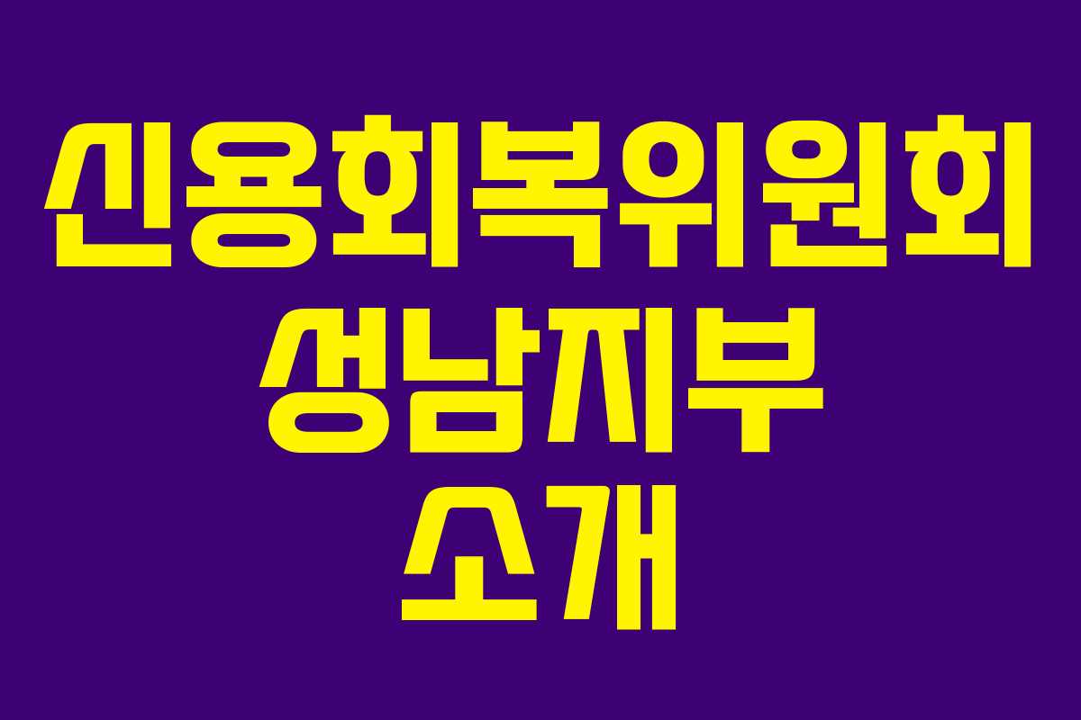 신용회복위원회 성남지부는 경제적으로 어려운 분들에게 필요한 정보를 제공하고, 실질적인 상담을 통해 도움을 주는 기관입니다. 채무 문제로 고민하는 분들은 언제든지 성남지부를 방문하셔서 지원을 받을 수 있습니다.