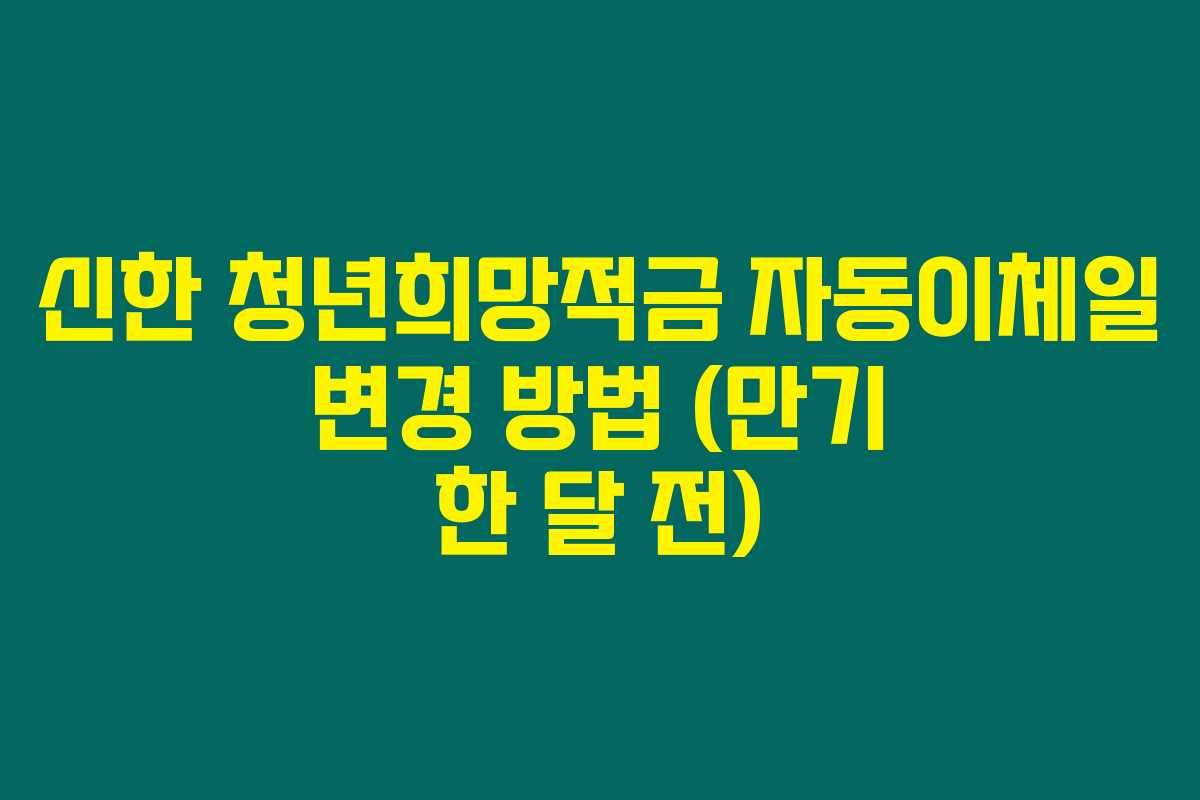 신한 청년희망적금의 만기가 한 달 남았을 때, 자동이체일을 변경해야 한다는 사실을 아셨나요? 많은 사람들이 이 시점에서 자동이체일을 변경하고 이자 수익을 극대화하고 있습니다. 아래를 읽어보시면, 왜 자동이체일 변경이 필요한지, 또한 어떻게 변경할 수 있는지에 대해 알아볼 수 있습니다.