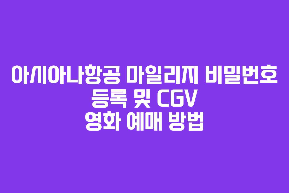 아시아나항공의 마일리지를 사용하기 위해 비밀번호를 등록하고, 이를 통해 CGV에서 영화 예매를 하는 방법에 대해 알아보겠습니다. 마일리지 소멸 기한이 다가올 때, 어떻게 효율적으로 마일리지를 사용할 수 있는지에 대한 가이드를 제공합니다.