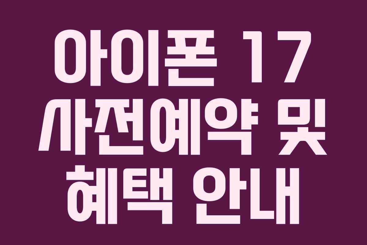 아이폰 17의 사전예약은 많은 소비자들에게 큰 관심을 받고 있습니다. 이번 포스팅에서는 아이폰 17의 사전예약 일정, 방법, 혜택 및 성공적인 예약을 위한 팁을 자세히 알아보겠습니다.