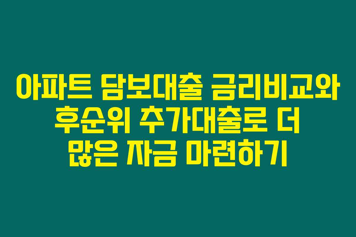 아파트 담보대출 후순위 추가대출에 대한 정보와 금리 비교를 통해, 정확한 선택을 하시길 바랍니다. 자금을 마련하는 방법은 다양하니 더욱 더 신중히 고려하시는 것이 좋습니다.