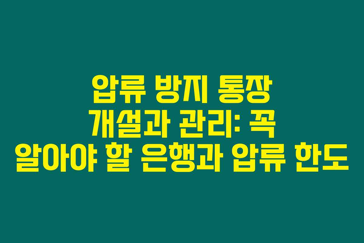 압류 방지 통장을 개설하는 것에 대해 고민하고 계신가요? 은행에서 제공하는 다양한 옵션들과 함께 입금 및 출금 압류 한도에 대해 명확히 이해해야만 각각의 의무를 잘 이행할 수 있습니다. 아래를 읽어보시면, 압류 방지 통장에 대한 정보를 얻고, 경제적 안전망을 구축할 수 있는 기회를 놓치지 않게 될 거예요.