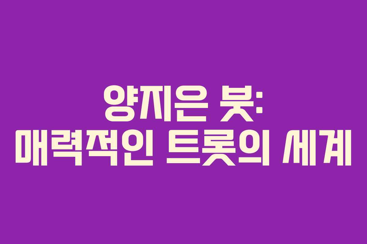 답변: 양지은의 “붓”은 강진의 원곡을 리메이크한 곡으로, 애절한 사랑의 감정을 잘 표현한 트롯 음악입니다.