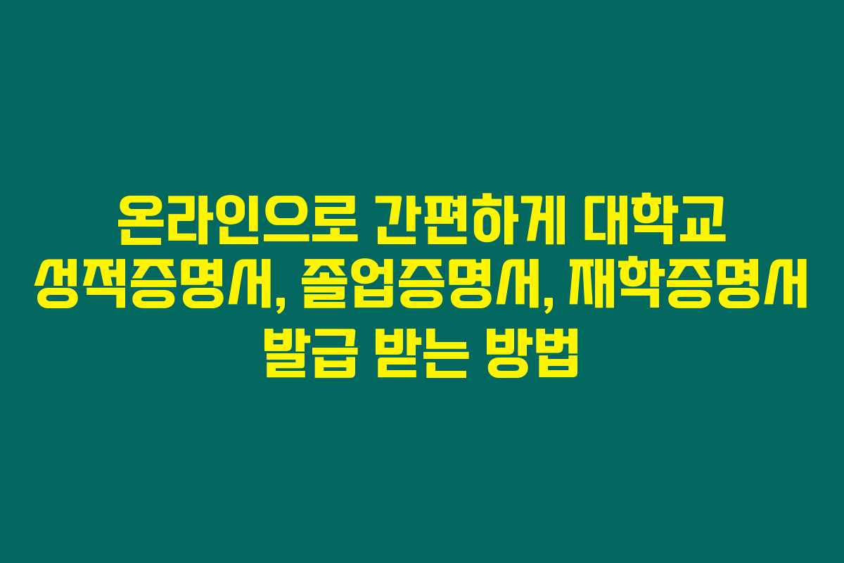 제가 알아본 바로는, 많은 분들이 대학교 성적증명서, 졸업증명서, 재학증명서를 필요로 하다가 발급 방법에 어려움을 겪고 계시더라고요. 특히 시간이 부족한 요즘, 손쉽게 원하는 서류를 발급받을 수 있는 방법이 정말 유용하답니다. 아래를 읽어보시면 온라인으로 즉시 발급받을 수 있는 방법에 대해 자세히 알아볼 수 있어요.