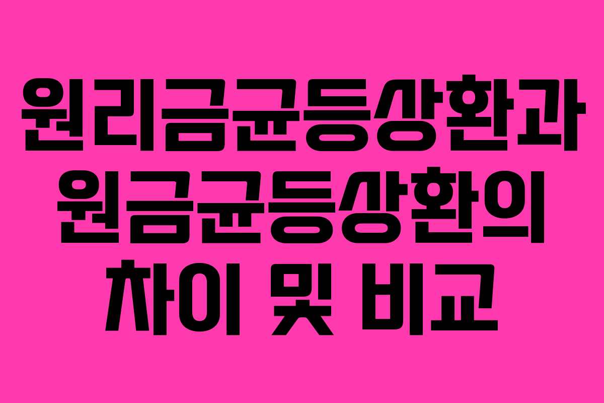 대출을 받을 때 상환 방식을 선택하는 것은 매우 중요합니다. 원리금균등상환과 원금균등상환은 대표적인 두 가지 상환 방식으로, 각각의 특징과 장단점이 존재합니다. 이 글에서는 이 두 가지 상환 방식의 차이를 알아보고, 어떤 방식이 본인에게 더 적합할지 살펴보겠습니다.