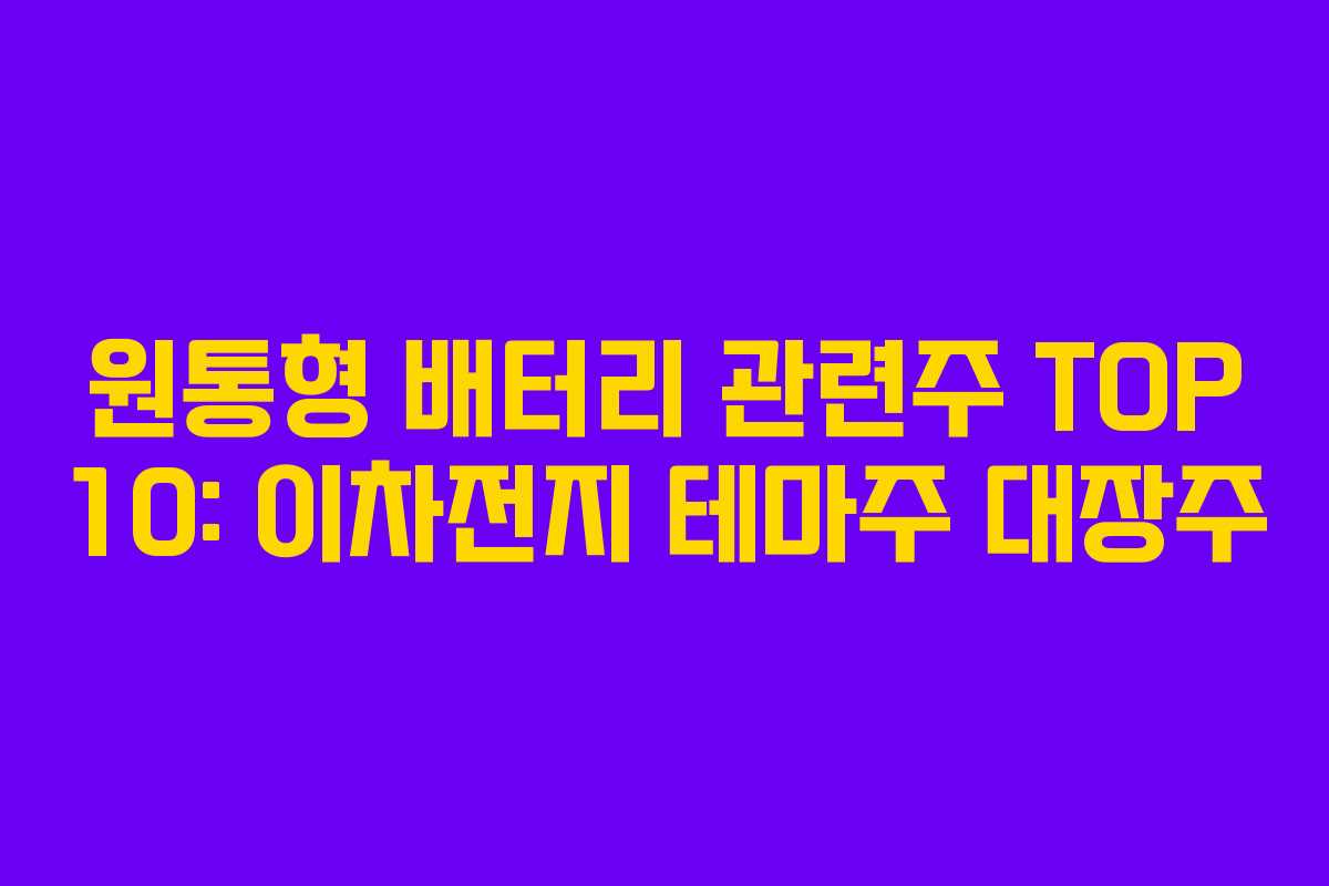 원통형 배터리 관련주 TOP 10: 이차전지 테마주 대장주