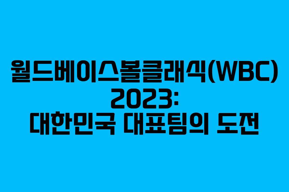 2023년 3월, 세계 최대의 야구 축제인 월드베이스볼클래식(WBC)이 6년 만에 개최됩니다. 코로나19로 인해 2021년 대회가 취소된 가운데, 이번 대회에 대한민국 대표팀이 출전하여 새로운 도전을 시작합니다.