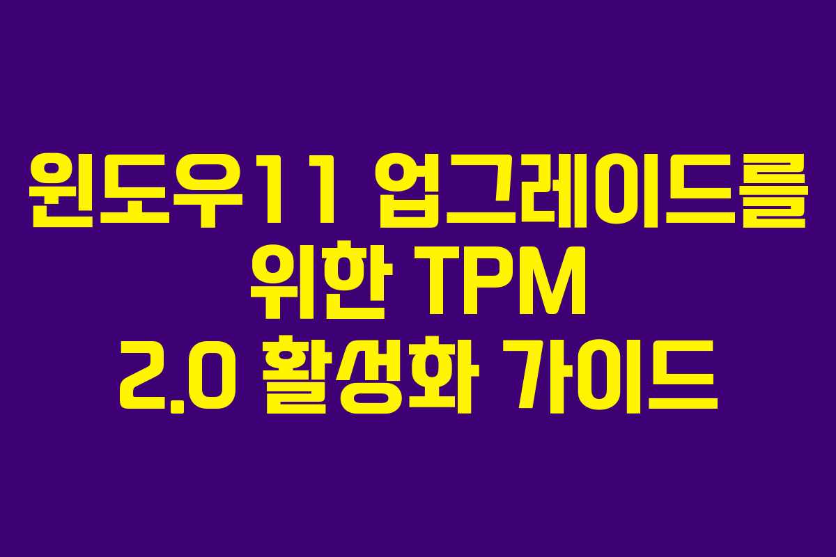 TPM은 Trusted Platform Module의 약자로, 보안 칩으로서 컴퓨터의 보안을 담당합니다. 윈도우11 설치에 필수적입니다.