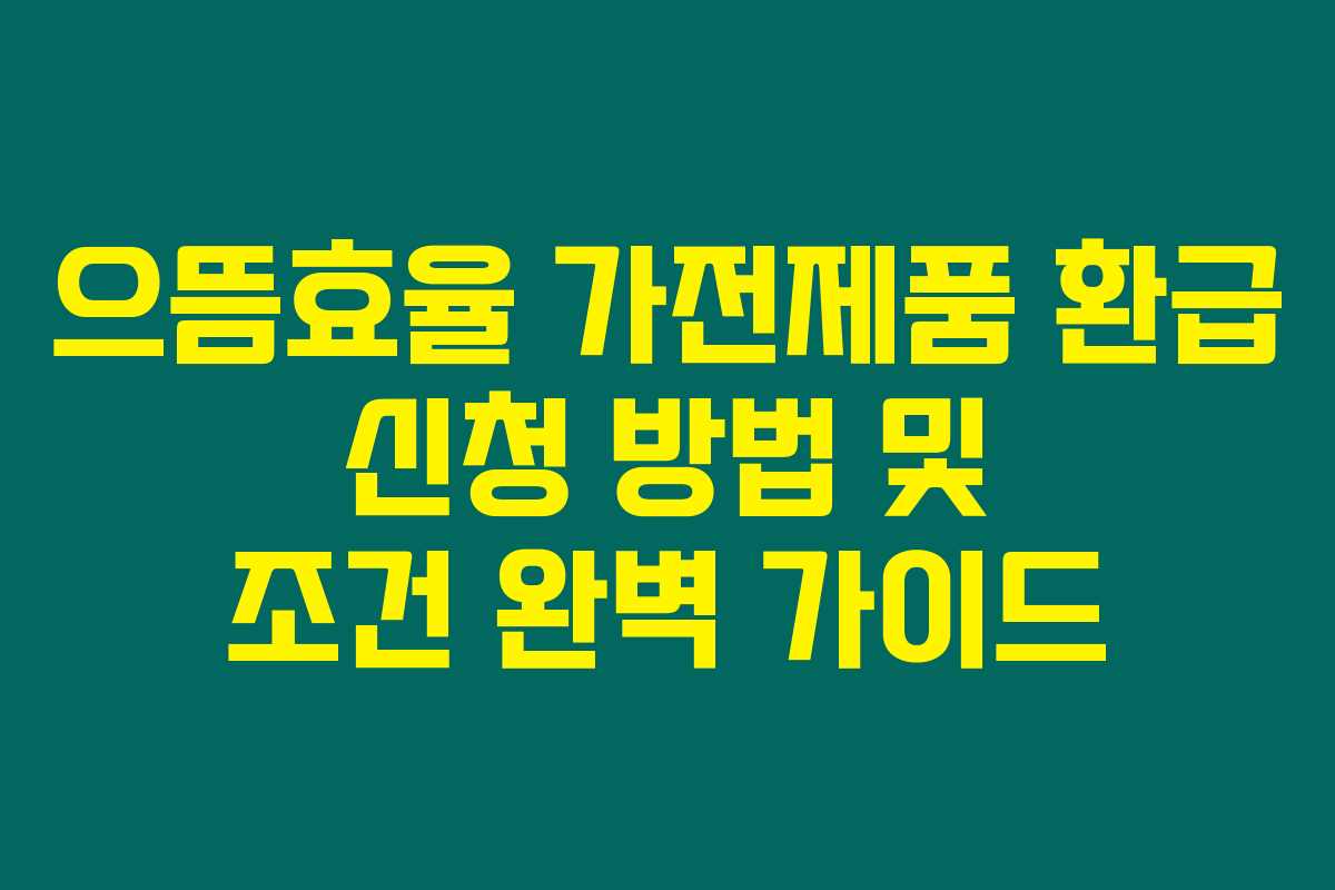 이 정보를 통해 으뜸효율 가전제품 환급 신청 방법과 조건을 정확히 파악하고 혜택을 누리시길 바랍니다!