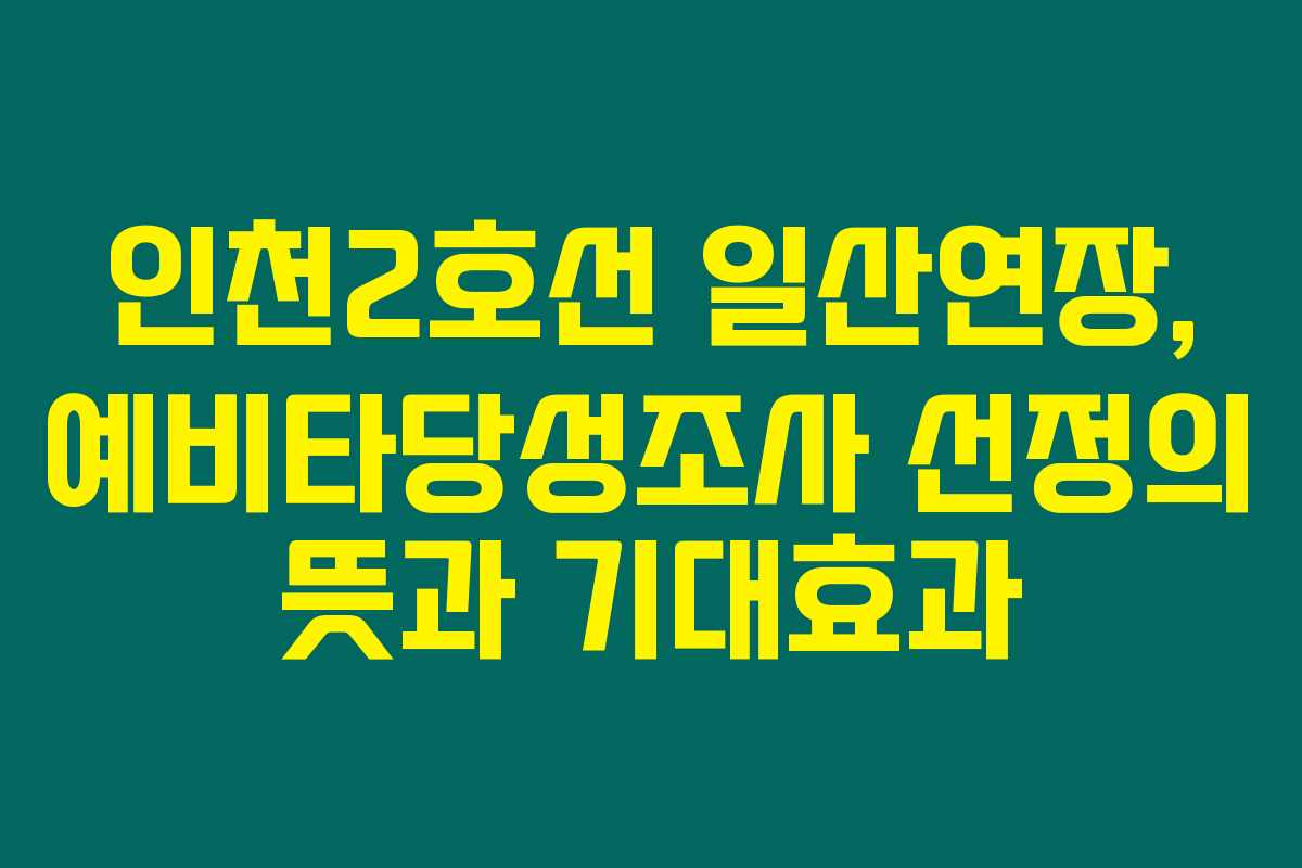 제가 직접 리서치한 바에 따르면, 인천2호선의 일산연장 사업이 최근 기획재정부의 예비타당성조사 대상사업으로 선정되었습니다. 이 소식은 부동산 시장과 대중교통에 많은 영향을 미칠 것으로 보입니다. 아래를 읽어보시면, 인천2호선의 일산연장이 어떻게 진행될지, 그리고 그로 인해 예상되는 변화와 효과에 대해 자세히 알아볼 수 있습니다.