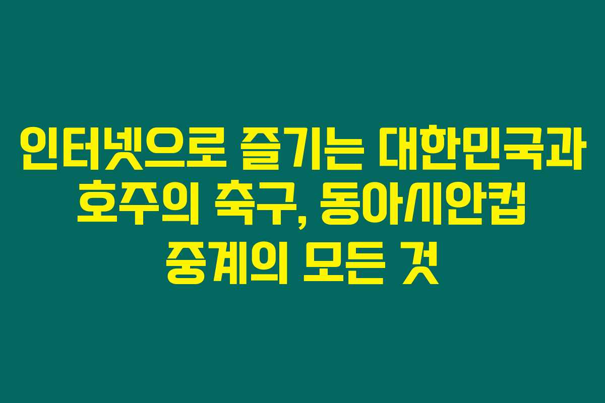 제가 직접 경험해본 결과로는, 인터넷을 통해 축구 경기를 중계하는 것은 많은 축구팬들에게 큰 즐거움이 됩니다. 특히, 이번 동아시안컵에서 대한민국과 호주 간의 경기는 뜨거운 관심을 받게 되는데요. 아래를 읽어보시면, 동아시안컵 중계에 대한 정보와 더불어 어떻게 인터넷으로 쉽게 경기를 시청할 수 있는지 안내해드리겠습니다.
