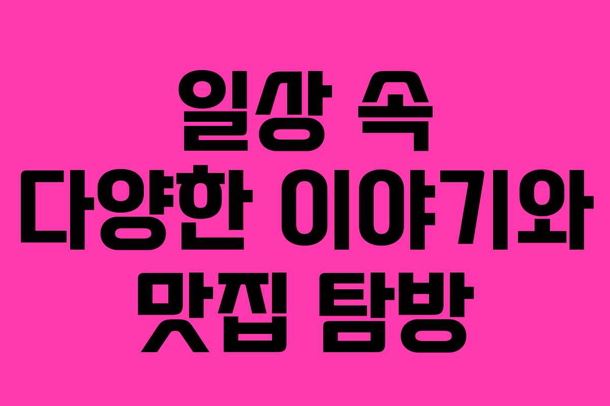 일상에서 겪는 다양한 경험들과 맛집 탐방에 대한 이야기를 나눠보겠습니다. 여러 가지 주제를 통해 여러분과 소통하고 싶습니다.