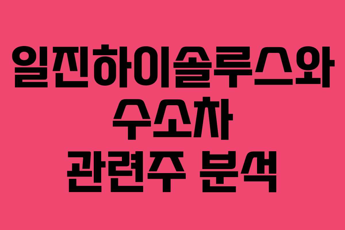 일진하이솔루스는 수소차의 핵심 부품인 탄소섬유를 생산하는 기업으로, 상장 직후 주가가 크게 상승하며 관심을 모으고 있습니다. 이 글에서는 일진하이솔루스의 주가 전망과 함께 관련된 수소차 주식들을 분석해 보겠습니다.