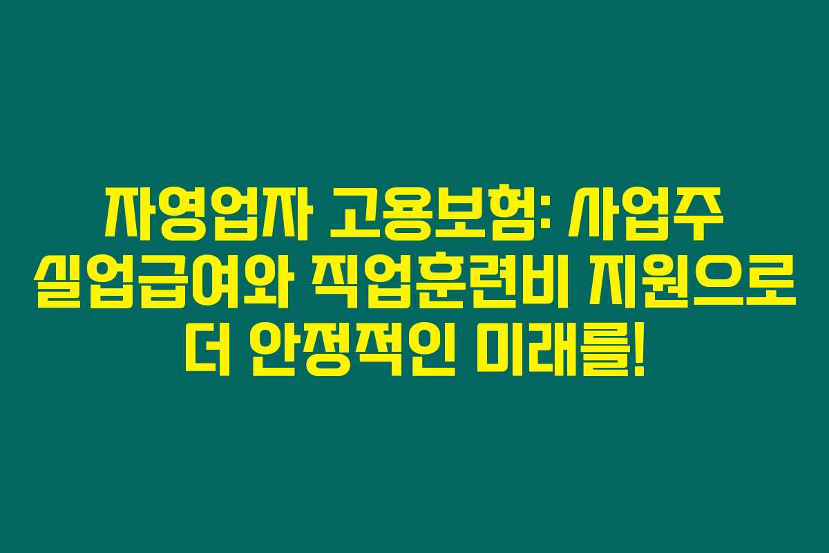 자영업자 여러분, 자영업을 유지하면서 실업 급여와 직업훈련비 지원 혜택을 받을 수 있는 방법을 찾고 계신가요? 자영업자 고용보험 제도를 통해 사업주도 다양한 지원을 받을 수 있다는 사실, 알고 계셨나요? 아래를 읽어보시면 자영업자 고용보험의 주요 내용과 지원을 받기 위한 방법을 쉽게 이해할 수 있을 거예요.