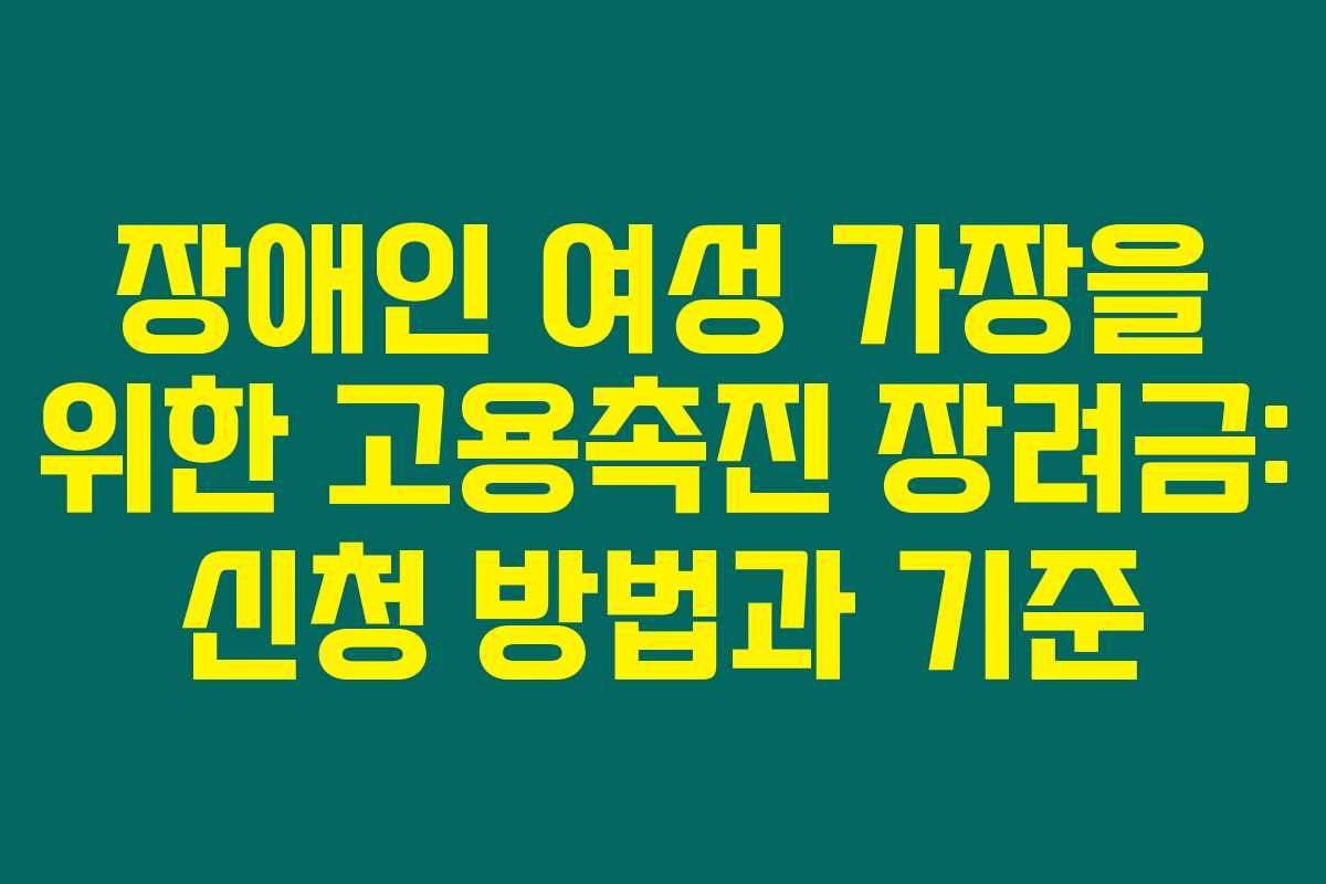 2. 장애인 여성가장 고용촉진 장려금 신청 조건