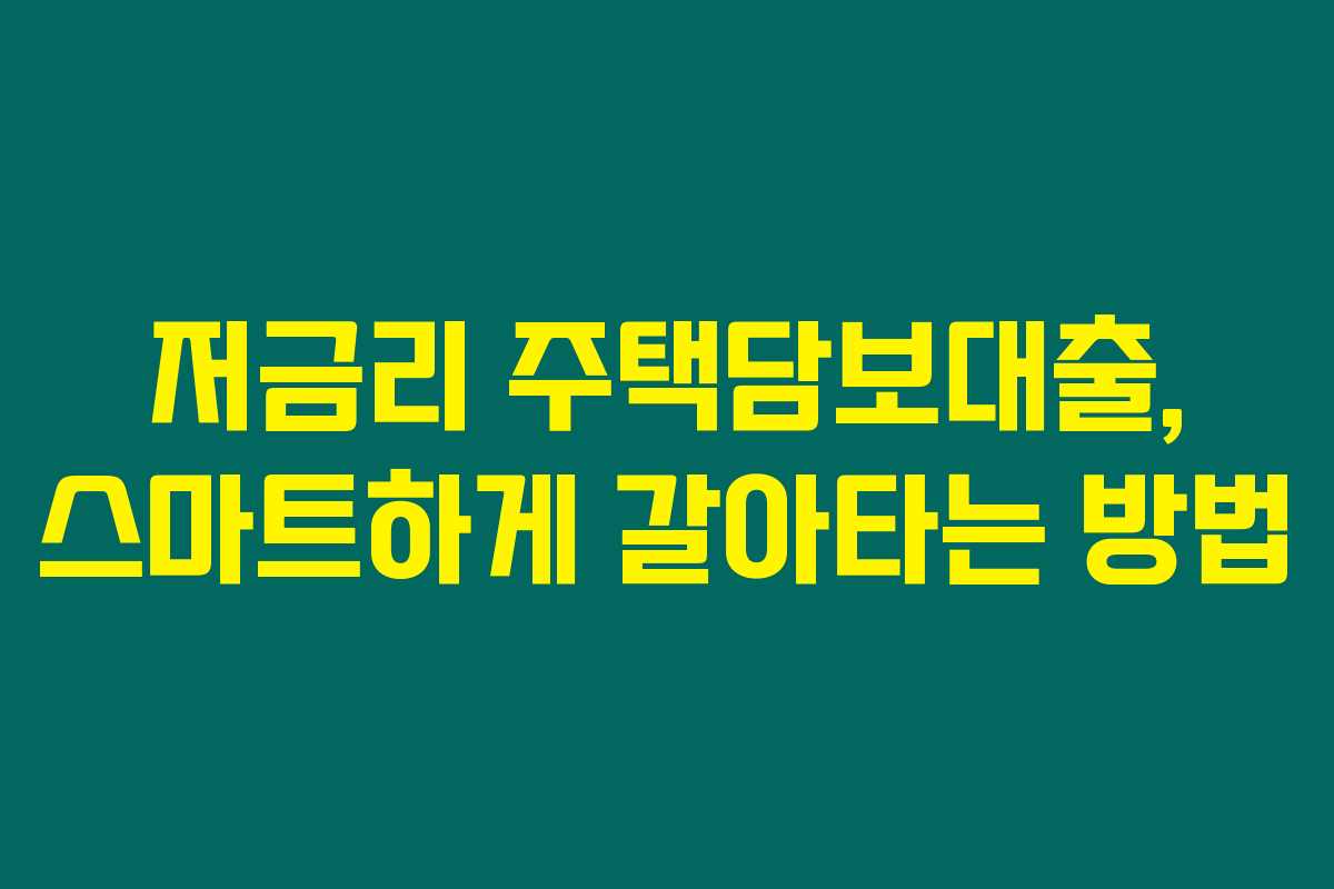 저금리 주택담보대출, 스마트하게 갈아타는 방법
