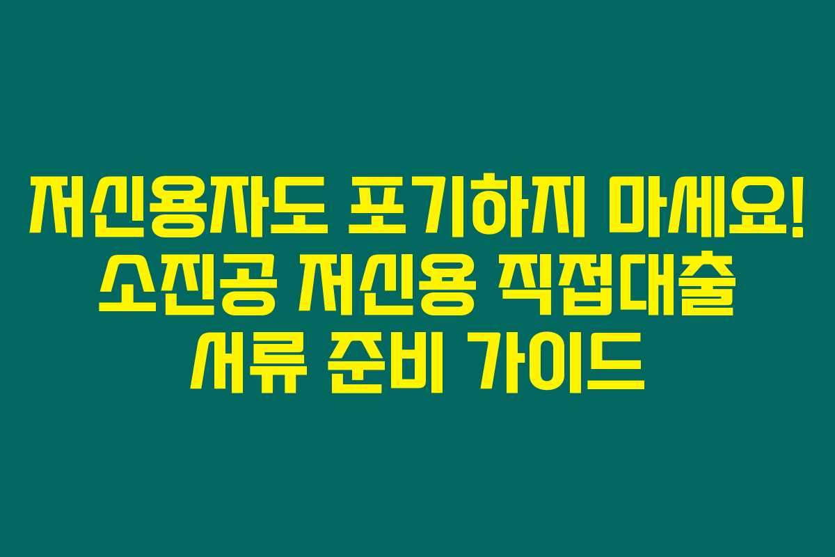 제가 직접 경험해본 결과로는, 저신용자들에게 소진공 저신용 직접대출은 단순히 자금을 조달하는 수단에 그치지 않고, 새롭게 도약할 수 있는 기회를 제공합니다. 하지만 대출을 신청하기 위한 서류 준비는 매우 중요합니다. 아래를 읽어보시면, 저신용 직접대출 서류 준비에 대한 체계적인 정보를 확인할 수 있습니다.