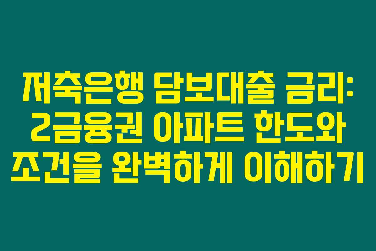 저축은행 담보대출 금리: 2금융권 아파트 한도와 조건을 완벽하게 이해하기