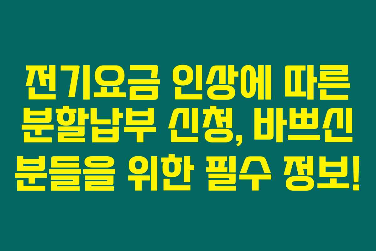 최근 전기요금 인상 소식에 많은 분들이 머리를 싸매고 계실 텐데요, 특히 무더위 속 에어컨 사용으로 요금이 부쩍 올라가는 상황이죠. 아래를 읽어보시면 전기요금을 부담 없이 관리할 수 있는 분할납부 신청에 대한 정보와 방법을 확인할 수 있습니다.