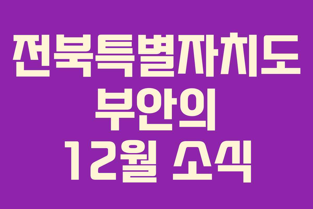 이번 12월, 전북특별자치도 부안에서는 다양한 소식과 함께 특별한 행사들이 진행됩니다. 부안의 매력을 느껴보세요!