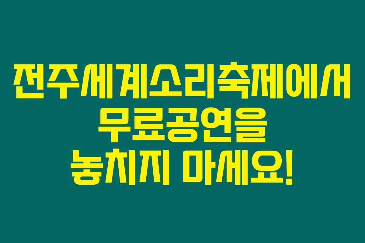 전주세계소리축제에서 제공하는 다양한 무료공연은 국악의 매력을 느끼기에 최고의 기회입니다. 여러분이 함께 즐길 수 있는 이 특별한 순간을 놓치지 마세요!