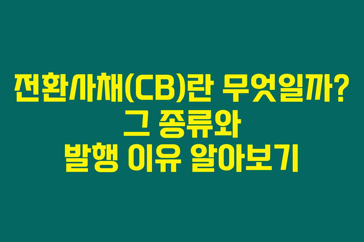 전환사채(CB)는 투자자와 기업 각각의 입장에서 큰 의미를 갖는 금융 상품입니다. 이 글에서는 전환사채의 정의, 발행 이유, 종류 및 주가에 미치는 영향을 자세히 설명하겠습니다. 아래를 읽어보시면 전환사채(CB)의 세계가 한결 더 선명해질 것입니다.