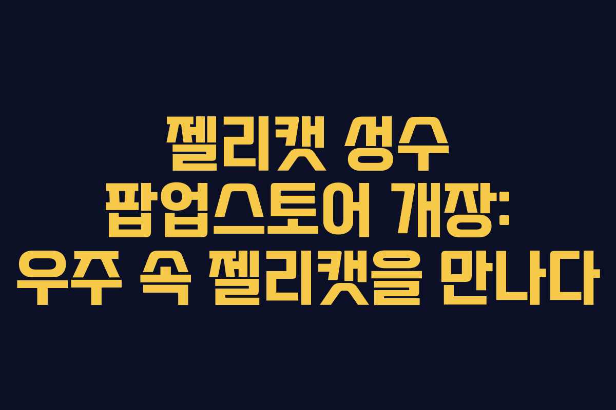 성수동의 핫플레이스에서 특별한 팝업스토어가 열렸습니다. 이번 젤리캣 팝업스토어는 전 세계 최초로 우주 콘셉트를 도입하여, 독특한 경험을 제공하고 있습니다. 귀여움과 감성이 넘치는 이 공간에서 다양한 젤리캣 제품을 만나보세요.
