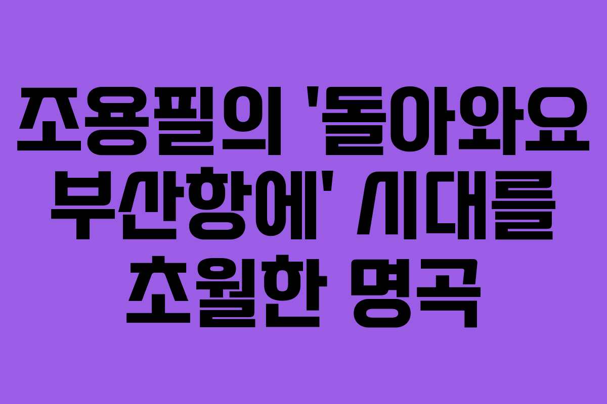 조용필의 ‘돌아와요 부산항에’는 1972년에 발표된 곡으로, 여러 드라마와 영화에서 자주 사용되며 시대를 대표하는 곡 중 하나입니다. 이 곡은 작사와 작곡이 모두 황선우에 의해 이루어졌으며, 조용필의 음악 경력에 큰 영향을 미친 곡으로 평가받고 있습니다.