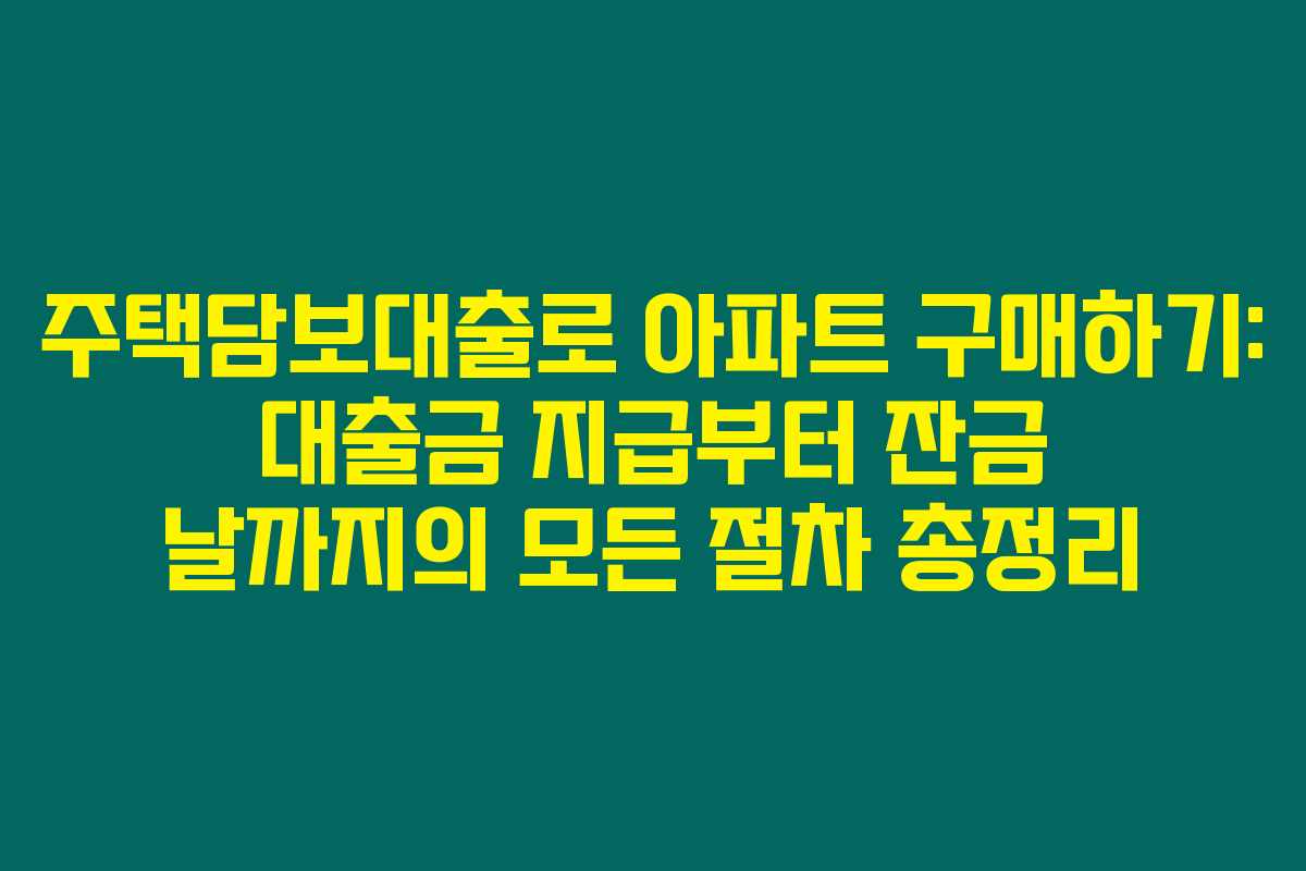 제가 직접 알아본 바로는, 주택담보대출을 통해 아파트를 구매하는 과정은 복잡하지만, 각 단계를 잘 이해하면 원활하게 진행할 수 있습니다. 대출금 지급에서 잔금일까지의 주요 절차와 팁을 아래를 읽어보시면 확인하실 수 있을 것입니다.