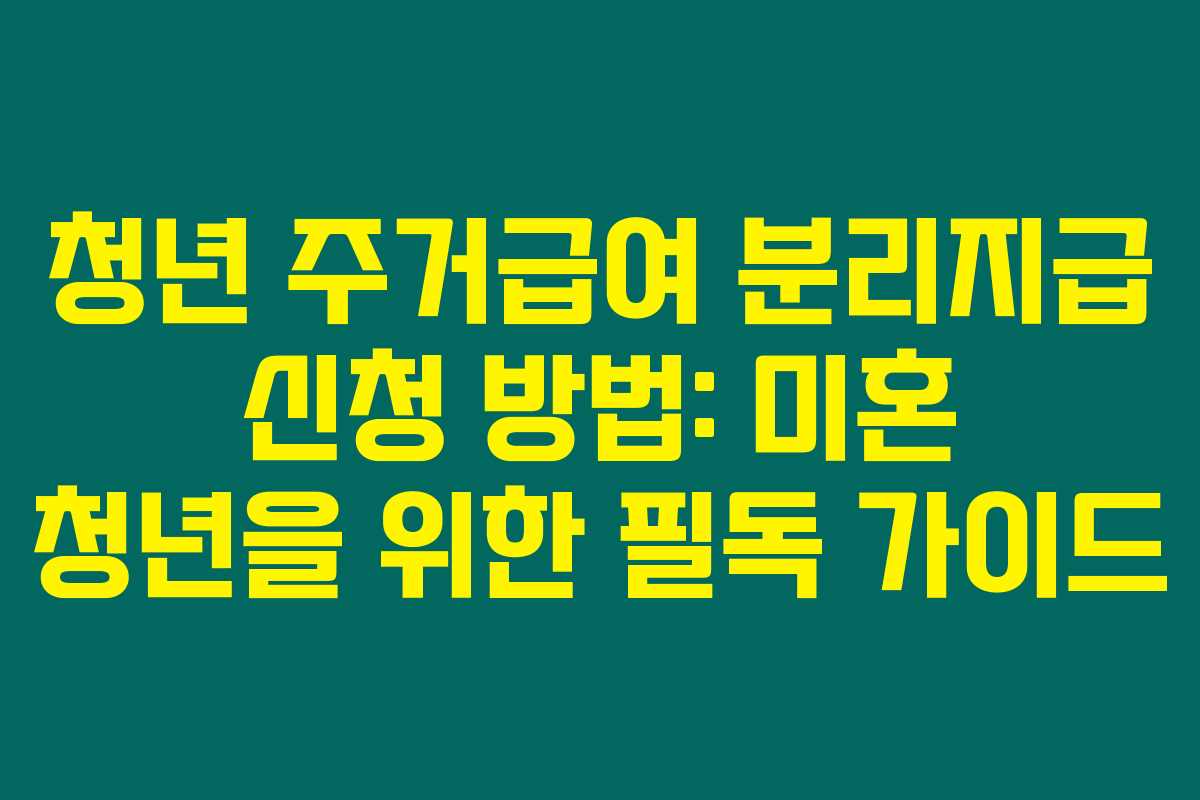 청년 주거급여 분리지급 신청 방법: 미혼 청년을 위한 필독 가이드