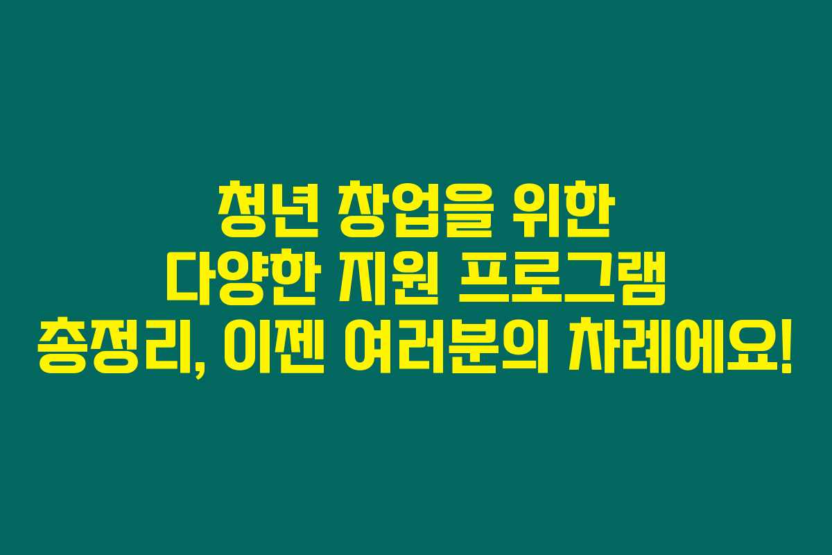 제가 직접 알아본 바로는, 청년 창업에 대한 지원은 지금 이 순간에도 활발하게 이루어지고 있답니다. 올해도 많은 청년들이 큰 꿈을 안고 창업의 첫발을 내딛으려 하고 있어요. 오늘은 제가 직접 리서치한 청년창업 지원사업에 대한 주요 내용을 정리해 보았으니, 아래를 읽어보시면 여러분의 창업 아이디어를 한 단계 더 발전시키는 데 큰 도움이 될 거예요!