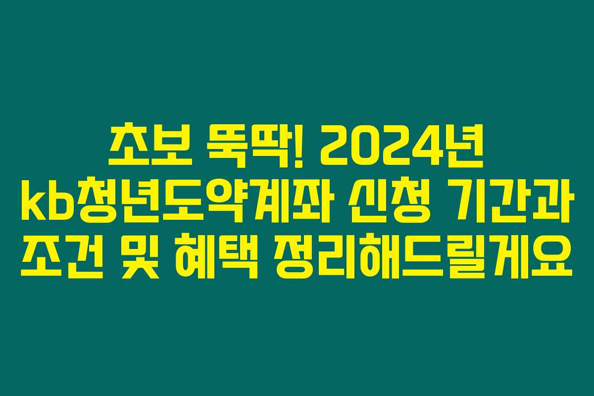여러분~ kb청년도약계좌는 2024년 8월부터 신청할 수 있는 기회를 제공해요. 그리고 이 상품은 청년의 재테크와 저축을 동시에 가능하게 해주니, 여러분의 소중한 자산을 키우는데 큰 도움이 될 거랍니다. 이러한 기회를 놓치지 마시고 신청 기간 내에 꼭 가입해보세요!
