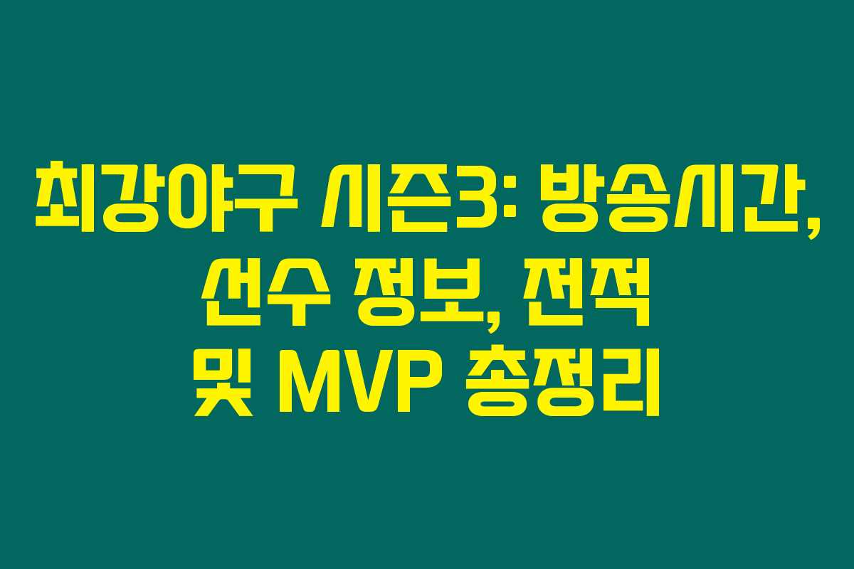 최강야구 시즌3이 돌아왔어요! 야구팬이라면 놓칠 수 없는 방송이죠. 최강야구 시즌3의 상세 정보를 전하고자 합니다. 선수 명단과 전적에서는 어떤 흥미로운 이야기가 숨어 있을까요? 아래를 읽어보시면 흥미진진한 내용을 확인할 수 있습니다.
