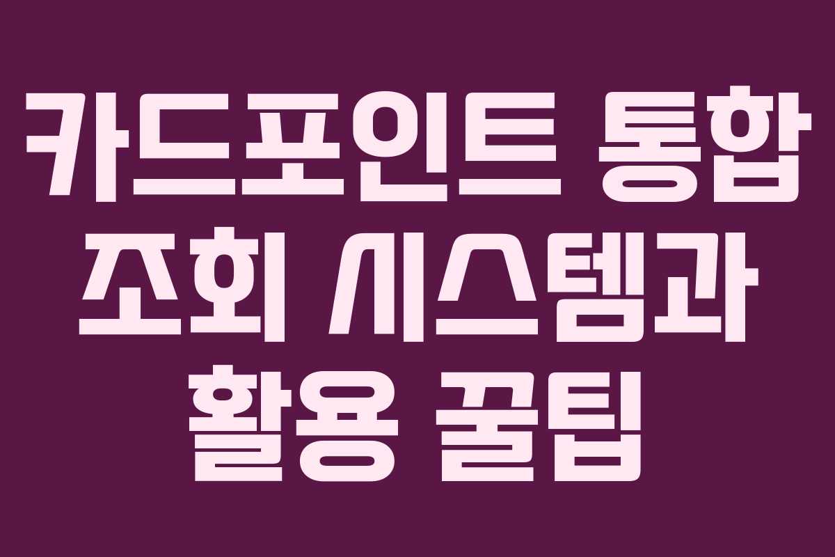 카드포인트는 통합조회 시스템을 통해 쉽게 관리할 수 있으며, 정기적으로 포인트 소멸 여부를 확인하는 것이 좋습니다.