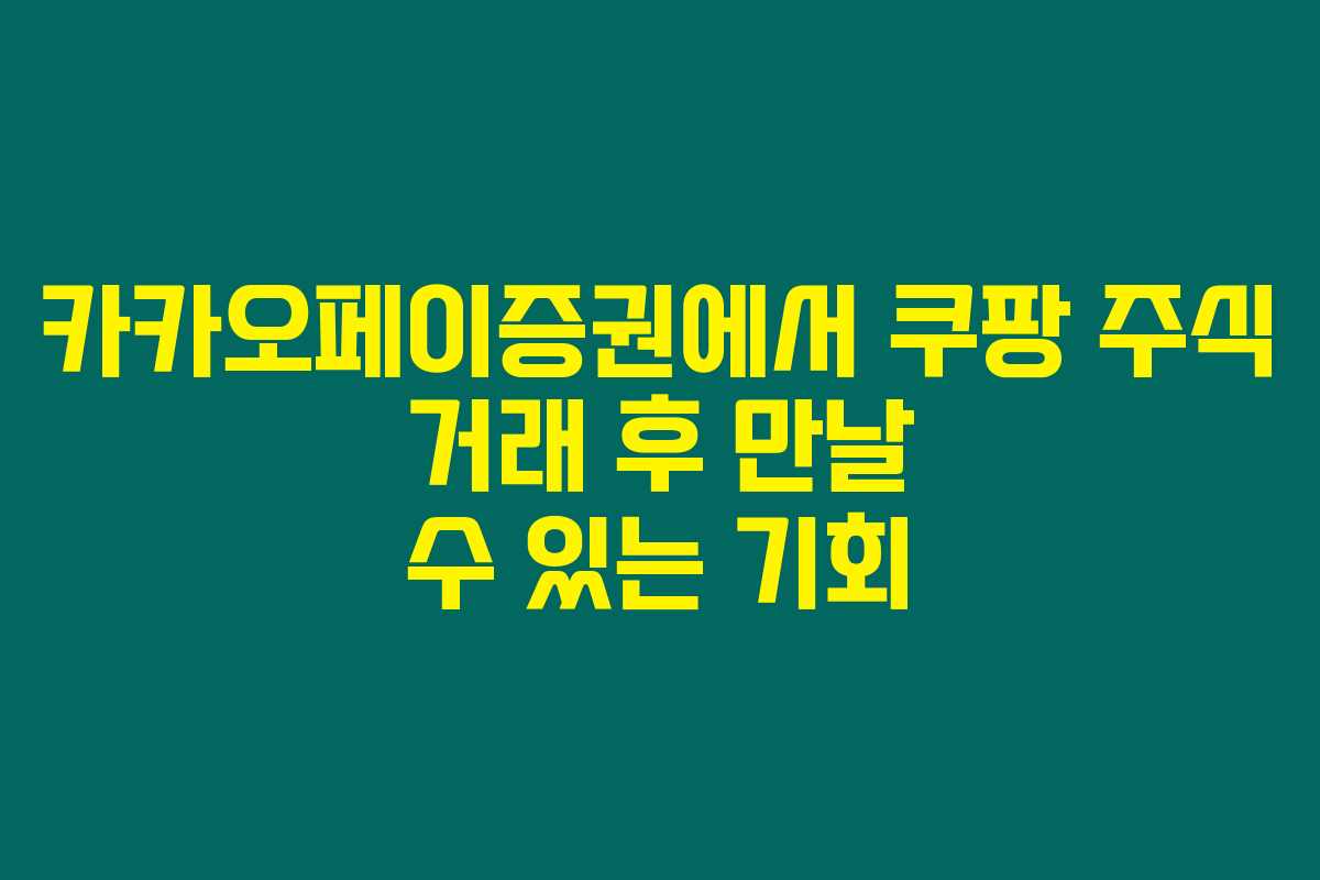 쿠팡(CPNG) 주식에 관심이 많다면 아래의 정보를 꼭 확인해보세요. 특히 카카오페이증권에서 진행하는 미국 주식 거래 이벤트는 놓쳐서는 안 될 기회입니다. 많은 사람들이 쿠팡 주식에 대한 기대감을 가지고 있지만 최근 주가의 변동성 때문에 고민 중이라면, 분명 이 글이 도움이 될 거예요!