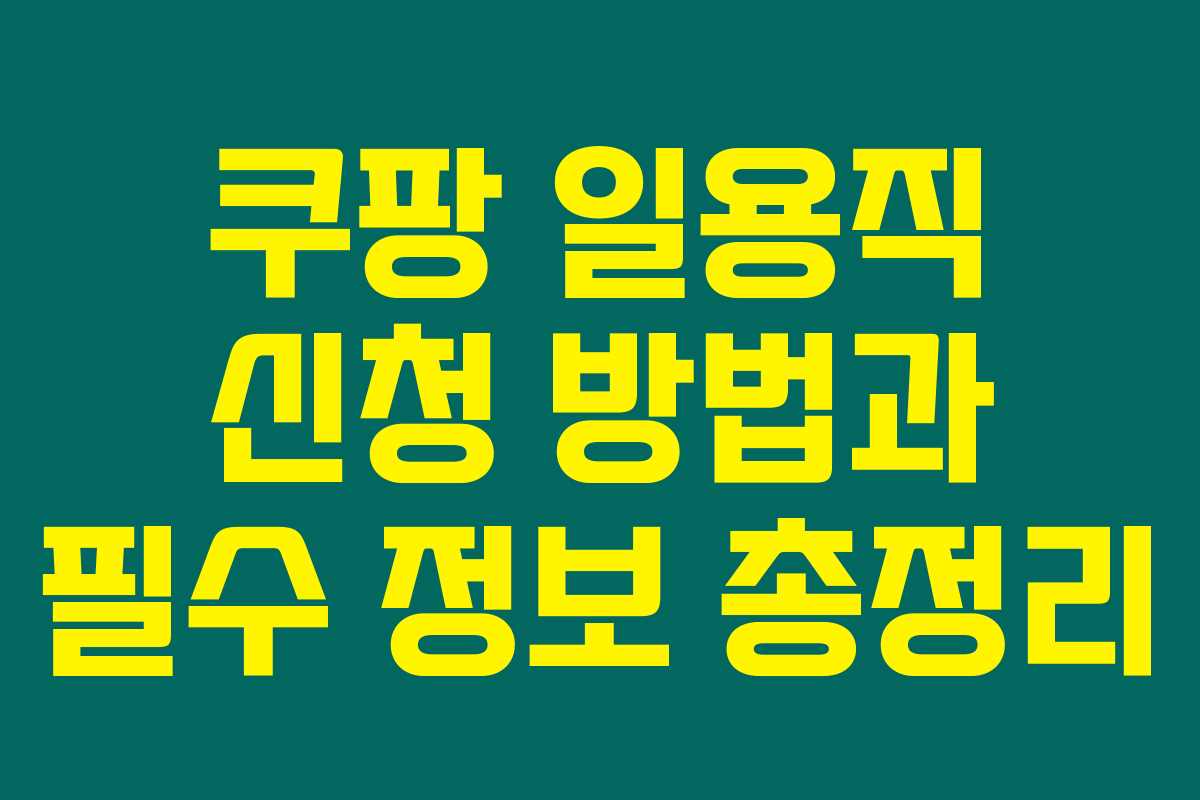 쿠팡 일용직 신청 방법과 필수 정보 총정리