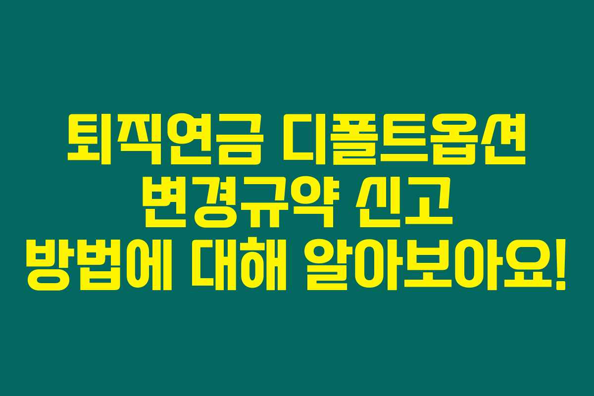 퇴직연금 디폴트옵션 변경규약 신고가 필요한 분들은 위 내용을 참고하셔서 미리 준비해보세요! 더 궁금한 점이 있다면 언제든지 댓글로 남겨주시면 좋겠어요.