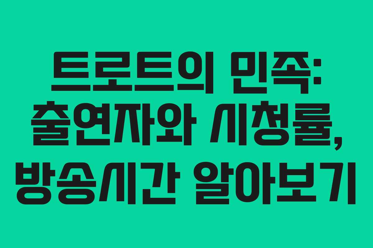트로트의 열풍이 계속되는 가운데 MBC에서 방영 중인 인기 트로트 음악 예능 ‘트로트의 민족’에 대해 알아보겠습니다. 이 프로그램은 2020년 10월 3일 첫 파일럿 방송을 시작으로, 10월 23일부터 정식 방송을 진행하며 많은 사랑을 받고 있습니다. 현재 11월 6일 3화 방송을 앞두고 있으며, 높은 시청률을 기록하고 있습니다.