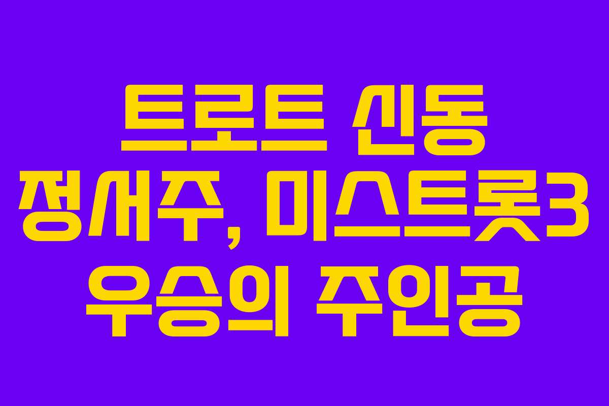 정서주는 미스트롯3에서 매 라운드마다 극찬을 받으며 결국 최종 우승을 차지했습니다. 앞으로도 다양한 활동을 통해 많은 사랑을 받을 것으로 기대됩니다.