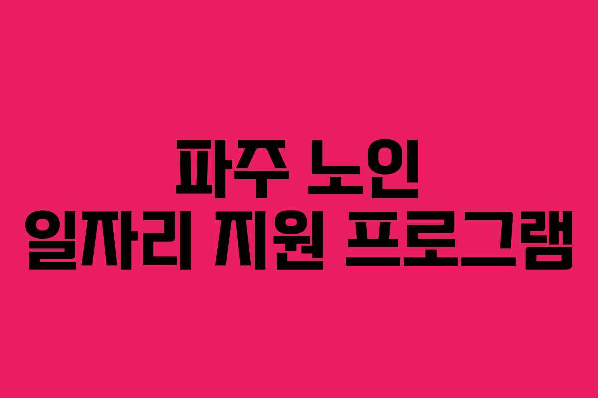 파주시의 노인 일자리 프로그램은 다음과 같은 세 가지로 구분됩니다: