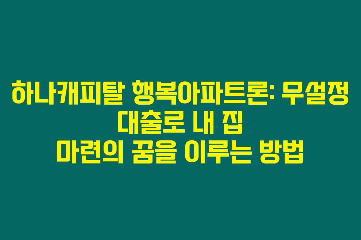 하나캐피탈 행복아파트론은 무설정 대출로, 아파트 소유자가 복잡한 절차 없이 간단하게 대출을 받을 수 있는 조건을 제공합니다.