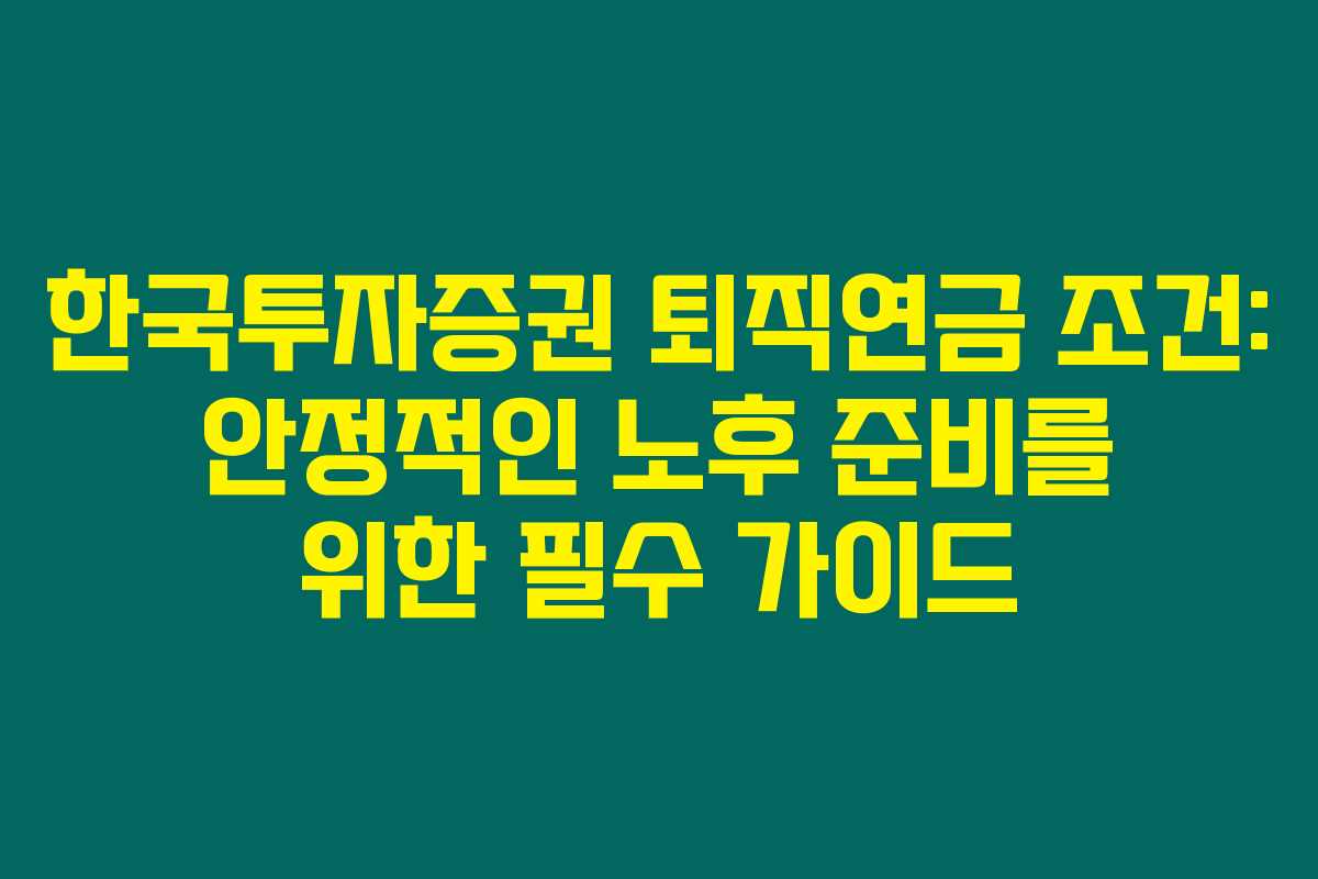 한국투자증권 퇴직연금의 가입 조건: 당신도 가능할까?