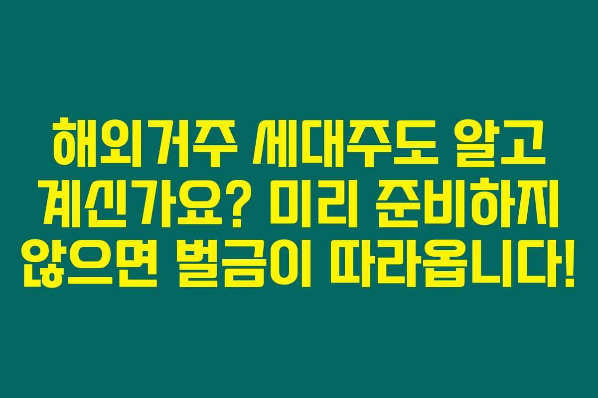 해외거주 세대주도 알고 계신가요? 미리 준비하지 않으면 벌금이 따라옵니다!