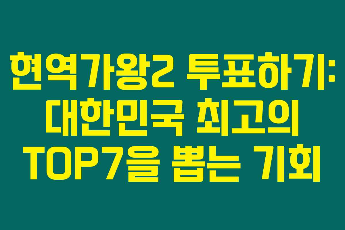 대한민국을 대표할 최고의 가수를 가려내는 현역가왕2 투표가 시작되었습니다! 만약 여러분이 음악을 사랑하고 내가 좋아하는 가수가 TOP7에 올라가는 걸 보고 싶다면 이번 투표에 꼭 참여해야 해요. 매번 기대감을 안고 지켜보는 이 프로그램은 내 마음속의 가수를 찾을 수 있는 절호의 기회니까요!