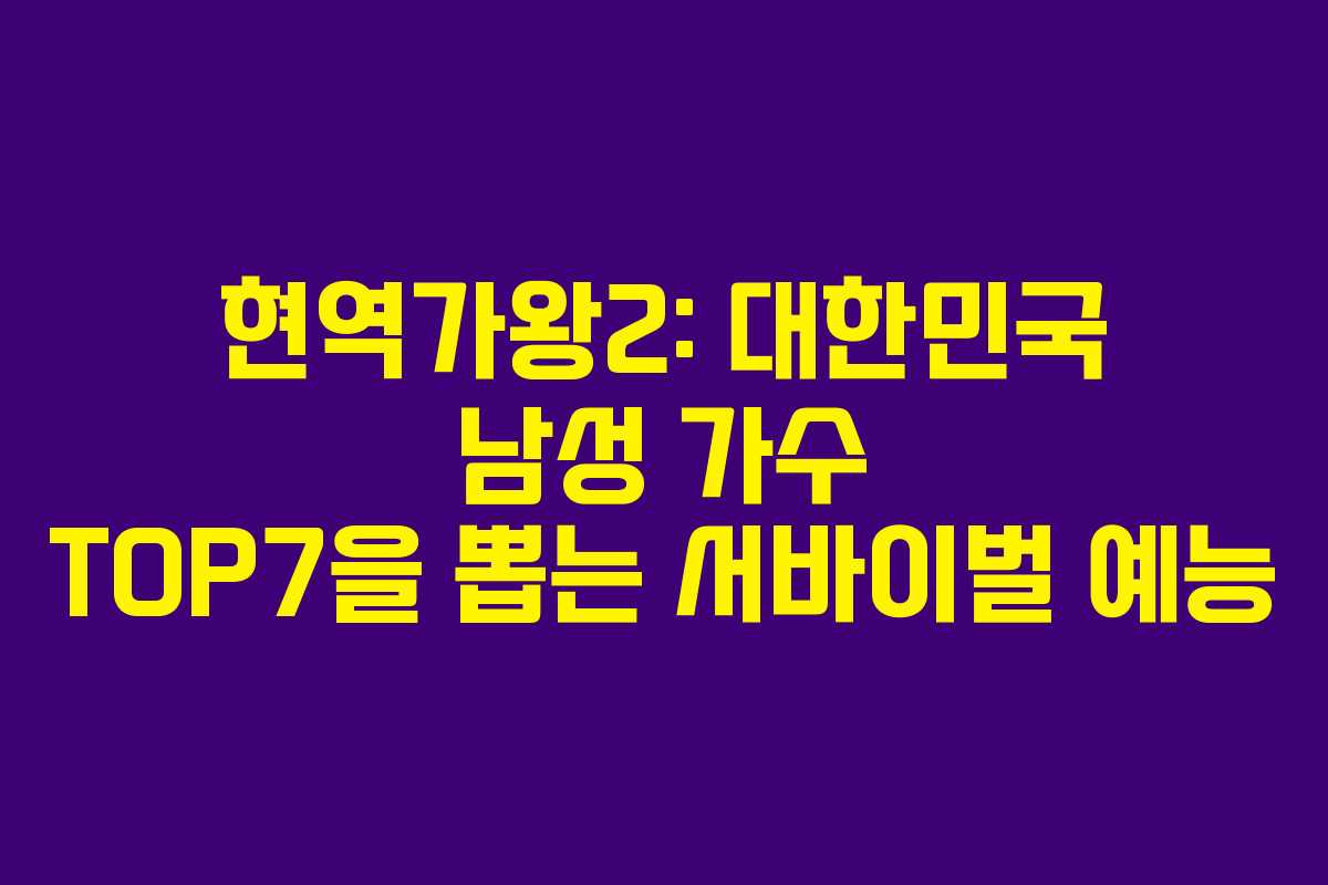 현역가왕2는 대한민국의 남성 가수 중에서 TOP7을 선정하여, 이들이 2025년에 열릴 한일가왕전에 참가할 수 있도록 하는 것을 목표로 하고 있습니다.