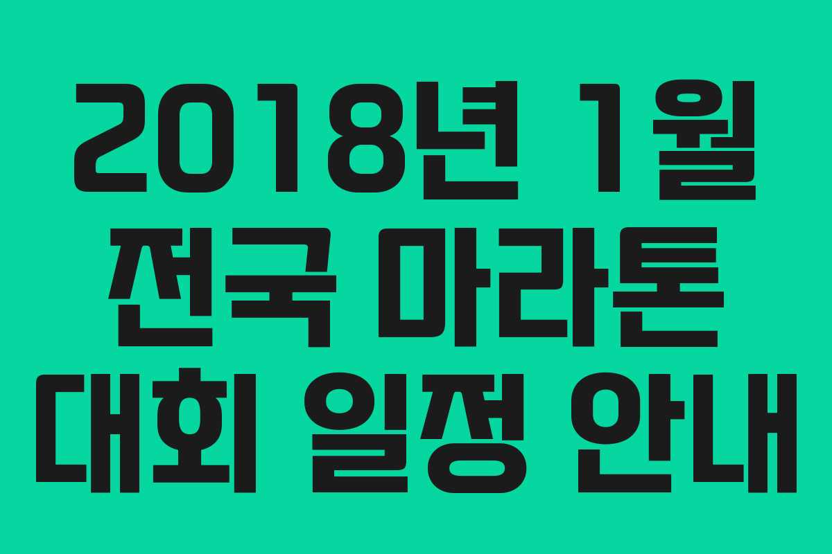 새해가 밝았습니다! 2018년 무술년을 맞이하여 마라톤을 사랑하는 모든 러너들에게 기쁜 소식을 전합니다. 다가오는 1월에는 다양한 마라톤 대회가 개최되니, 여러분의 참여를 기다리고 있습니다. 아래에 정리된 마라톤 대회 일정을 확인하고, 계획하신 운동 목표를 달성해 보세요.